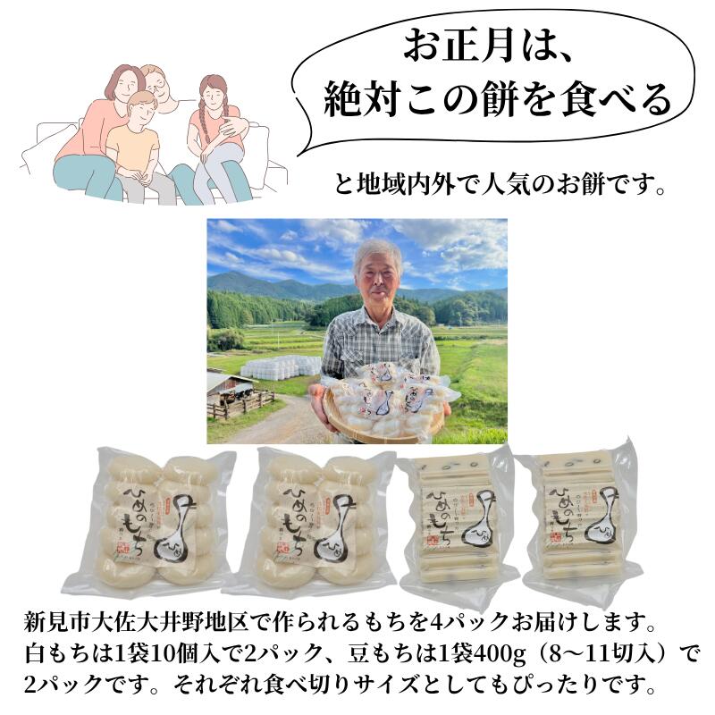 【ふるさと納税】白もち20個(10個入500g×2パック)豆もち 2パック(1パック400g:8〜11切) ヒメノモチ100%使用 発送月が選べる 白餅 しろ餅 豆餅 まめ餅 もち 餅 和菓子 もち米 ヒメノモチ 真空パック お雑煮 おしるこ ぜんざい おいしい 人気 お取り寄せ