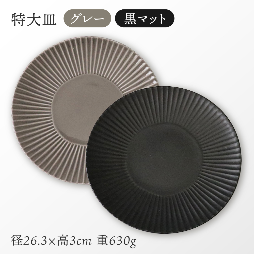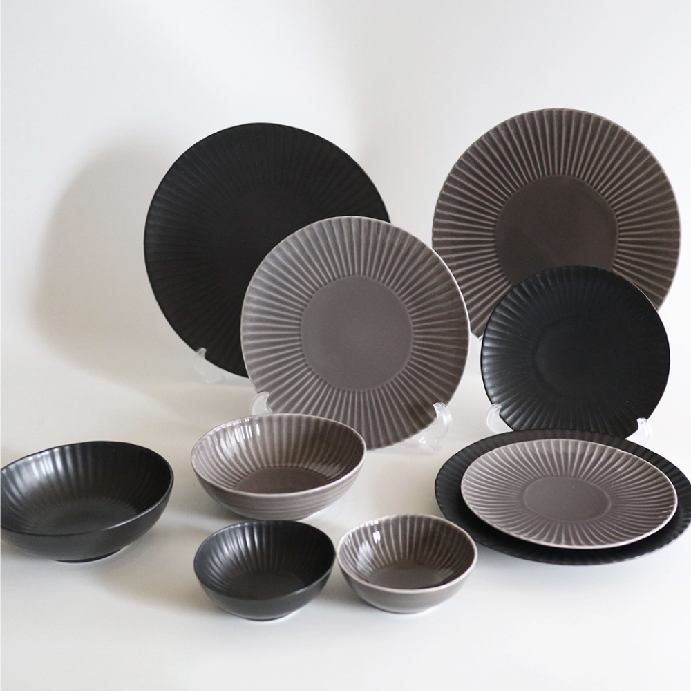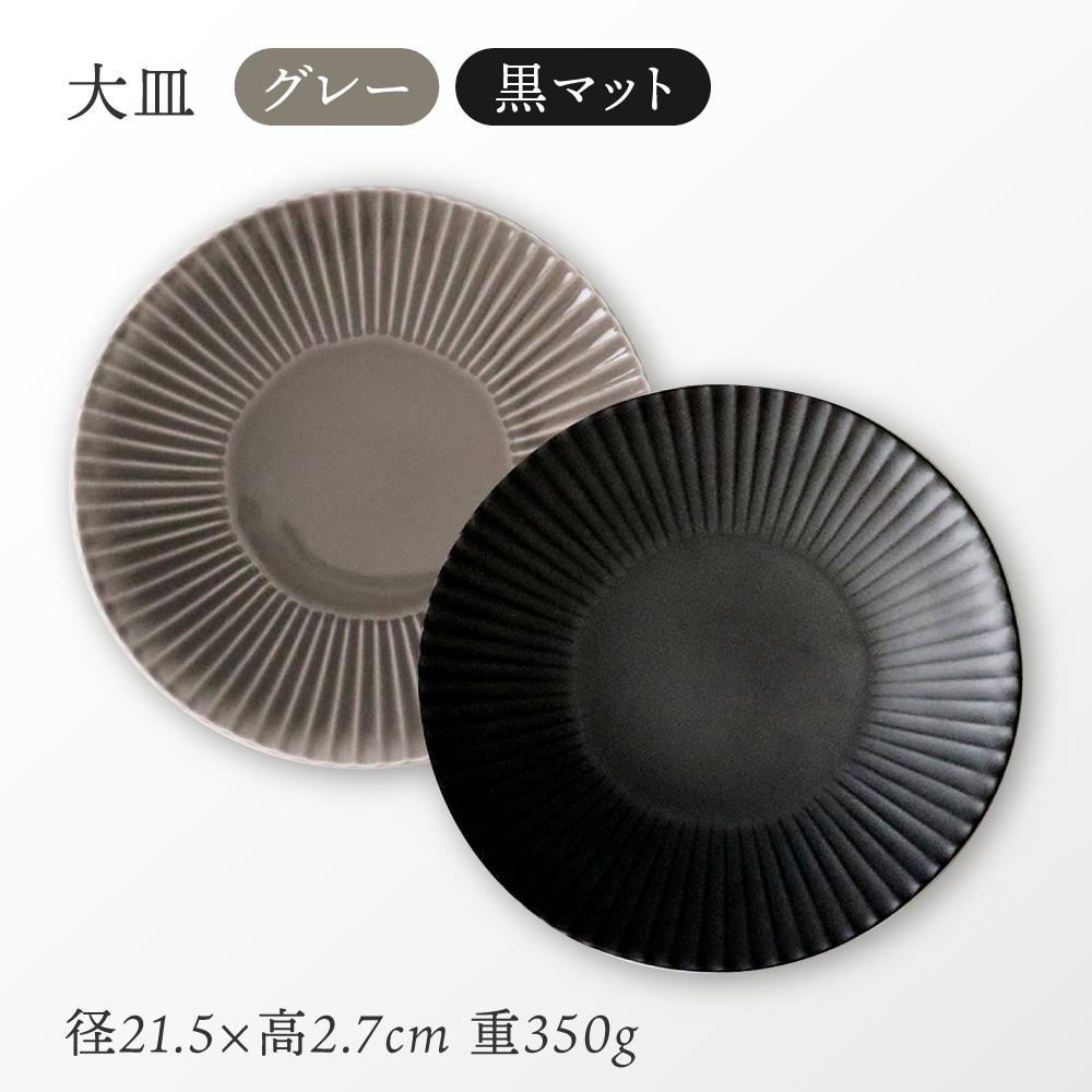 - 【波佐見焼】しのぎディナー プレート 大皿 小鉢 含む 10点セット(黒マット・グレー)【一龍陶苑】 [CC42]