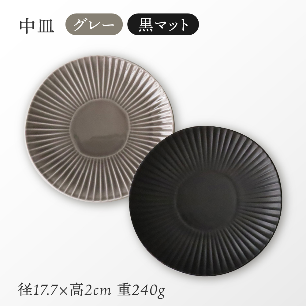 【波佐見焼】しのぎディナー プレート 大皿 小鉢 含む 10点セット(黒マット・グレー)【一龍陶苑】 [CC42]