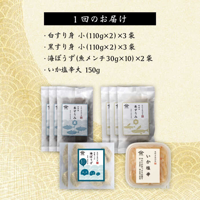 - 【ふるさと納税】【6回定期便】冷凍すりみセット (すり身2種/魚メンチ/いかの塩辛) 五島市/浜口水産[PAI019]かまぼこ すり身 つみれ ギフト 練り物 天ぷら 詰め合わせ セット おつまみ