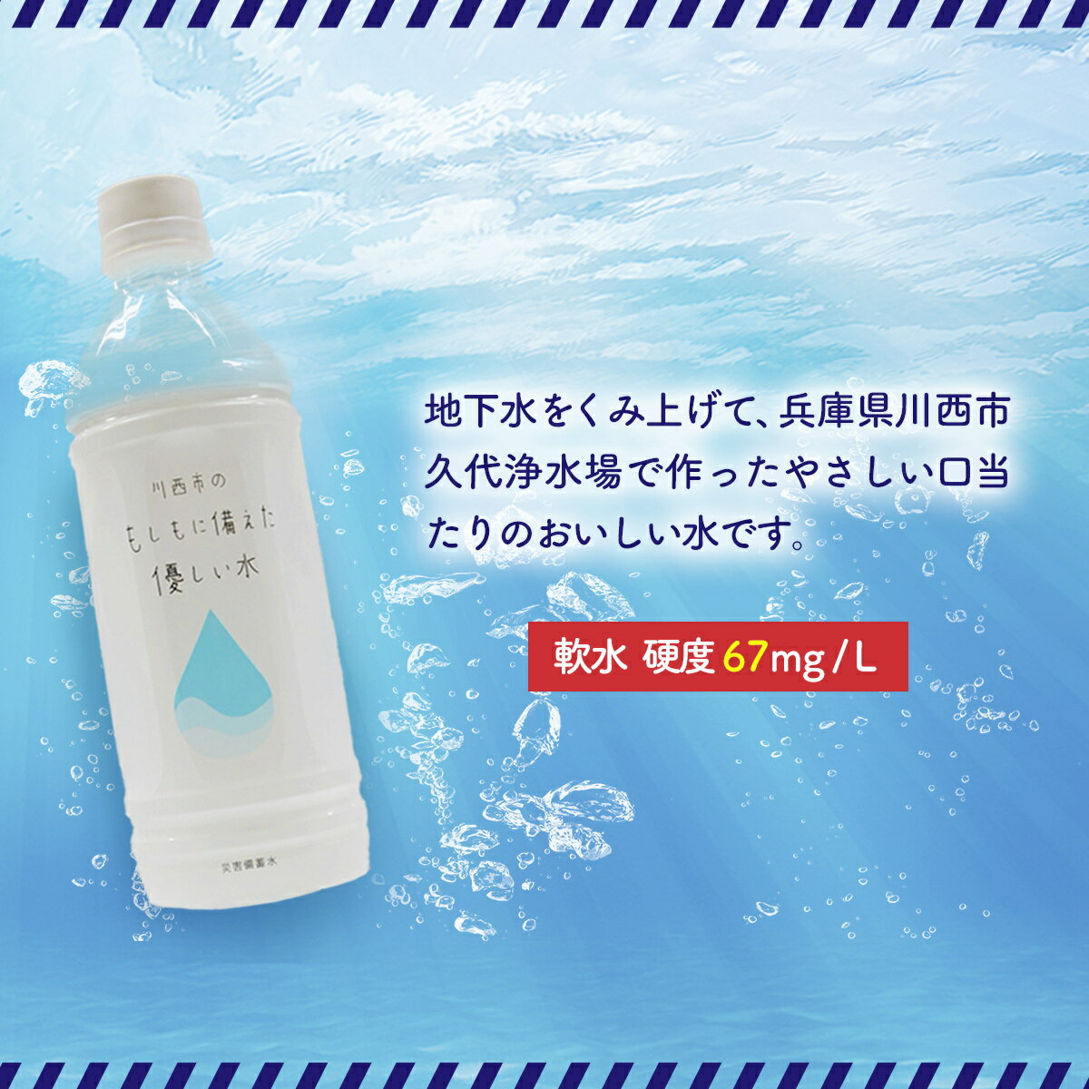 - 【ふるさと納税】No川西市のもしもに備えた優しい水ペットボトル1箱(500ml 24本入り)No.460 KWNCP001 / お水 やさしい 口当たり 飲料水 備蓄 防災 防災グッズ 備蓄用 長期保存 保存水 ペットボトル まとめ買い ケース買い 兵庫県 川西市