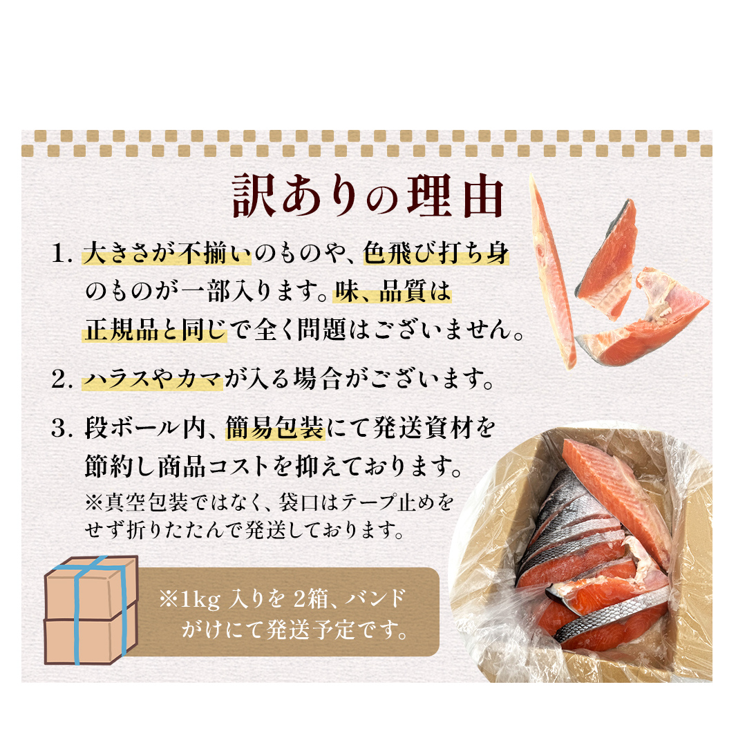【訳あり】鮭 銀鮭 切り身 2kg 鮭 海鮮 規格外 不揃い さけ サケ 鮭切身 シャケ 鮭切り身 冷凍 家庭用 訳アリ おかず 弁当 サーモン 魚 焼き魚 塩鮭 宮城 石巻 宮城県 石巻市 送料無料