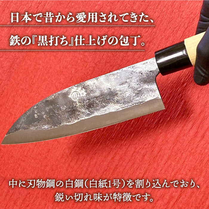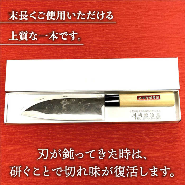 - 【職人技光る】三徳包丁(刃渡り約16cm) 鉄 黒打ち 白鋼 朴木柄 包丁 ナイフ 調理器具 料理 九州 佐賀県 白石町【川崎鍛冶屋】[IAN003]