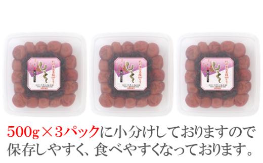 - 【 和歌山県 /紀州南高梅】 紀州南高梅 しそ風味 1.5kg(500g×3パック) 塩分約6% 梅干し うめぼし 梅 肉厚 完熟 体に優しい 小分け お裾分け 紫蘇 シソ
