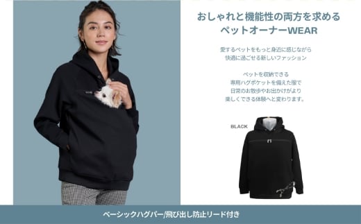 【ブラック・S】HAGSTYLE(ハグパーカー) / ハグパー ハグスタイル ペット用品 ペット 犬 猫 お出かけ ファッション ユニセックス 男女兼用 ペットを入れるポケット ハグポケット パーカー 長袖 埼玉県 No.311-01