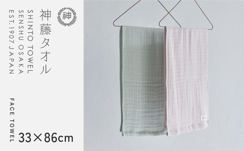 - 神藤タオル「ランダムガーゼ・フェイスタオル」(セージ)3枚セット 010B1793