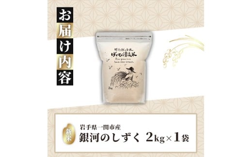 【 令和7年産 新米 】特別栽培 銀河のしずく 2kg お米 いわて コメ 精米 ブランド米 米 ご飯 白飯 ごはん お弁当 おにぎり 岩手県 一関市