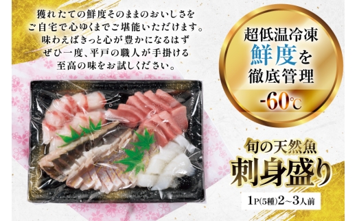 - 刺身 盛り合わせ 旬の天然魚の刺身盛り 5種 2~3人前 6回 定期便 総計12~18人前 詰め合わせ セット [囲炉裏料理エビス亭 長崎県 平戸市 hr42bgy390046] さしみ 厳選 マダイ 真鯛 本マグロ 天然 まぐろ 鮪 冷凍 寿司 すし
