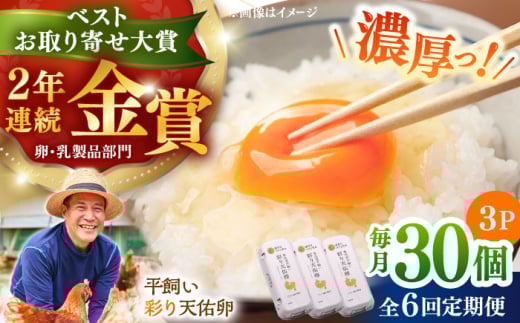 【平飼い卵】【全6回定期便】黄身の濃厚なコクと白身の甘み!たたらの里平飼い 彩り天佑卵 30個入り(10個×3P)たまご 卵 放牧卵 玉子 タマゴ 鶏卵 生卵 国産 平飼い 卵焼き 卵かけご飯 TKG 朝食 朝ごはん ご褒美 コク 旨み 贅沢 お取り寄せ 毎日食べたい卵 美容 健康 単品 定期便 人気 高評価 ランキング 島根県雲南市/株式会社たなべたたらの里(たなべ森の鶏舎) [AIDL003]