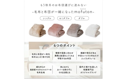 - mofuton セミダブル(グレージュ) _ mofuton セミダブル グレージュ 毛布 掛け布団 一体型 洗える 日本製 冬 吸湿 発熱 放湿 肌ざわり なめらか ポリエステル 高密度 マイクロファイバー 蒸れにくい 保温性 清潔 久留米市 送料無料 _Qc065-sd-ge
