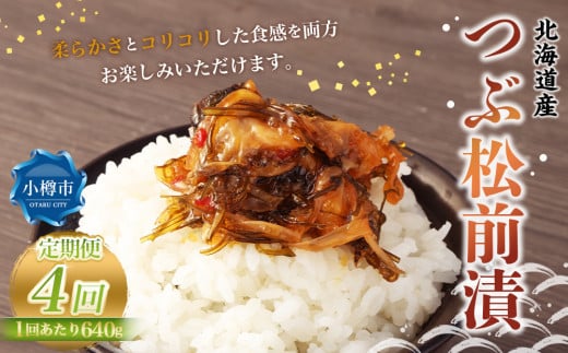 【4回定期便】 つぶ 松前漬 640g (160g×4) 合計2.56kg 4回 松前漬け つぶ貝 貝 海鮮 海の幸 定期便 北海道 小樽市 冷凍 送料無料
