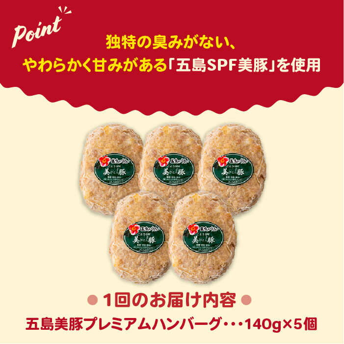 - 【ふるさと納税】【12回定期便】五島美豚プレミアムハンバーグ5個 五島市/長崎フードサービス[PEL042] ハンバーグ 手作り 肉 豚 豚肉 国産