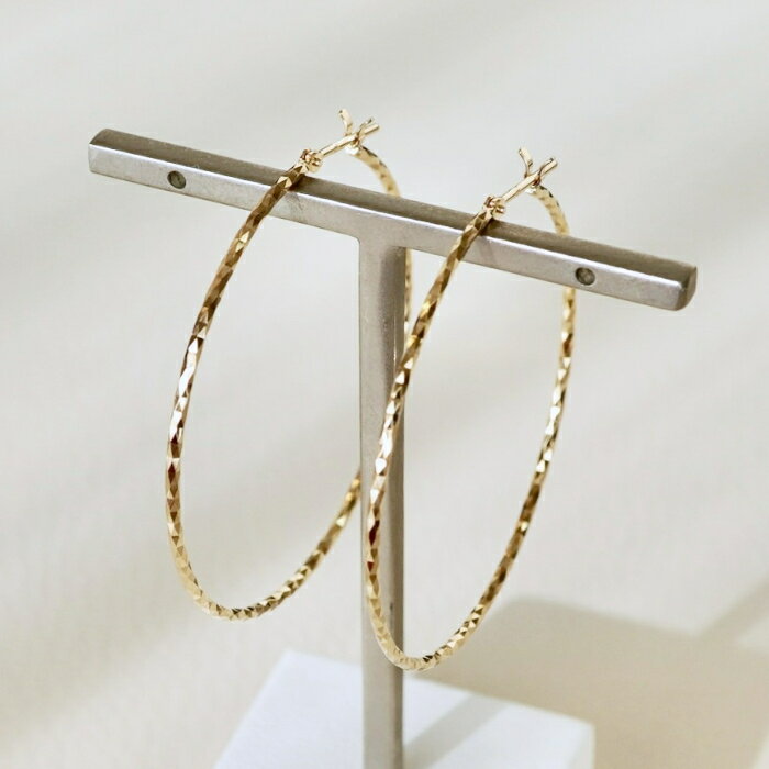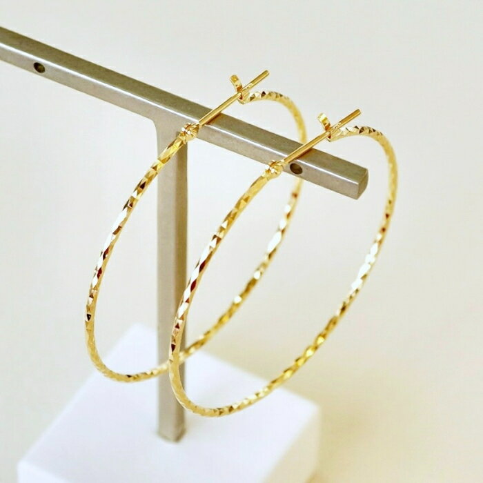 【ふるさと納税】ふるさと納税 フープピアス ジュエリー k18 地金 18k 18金 ジュエリーケース付 保証書付 アクセサリー おしゃれ ギフト プレゼント 山梨県 昭和町 母の日K18 イエローゴールド キラキラカット フープピアス (直径40mm) 保証書付 KO-0018SWAD015