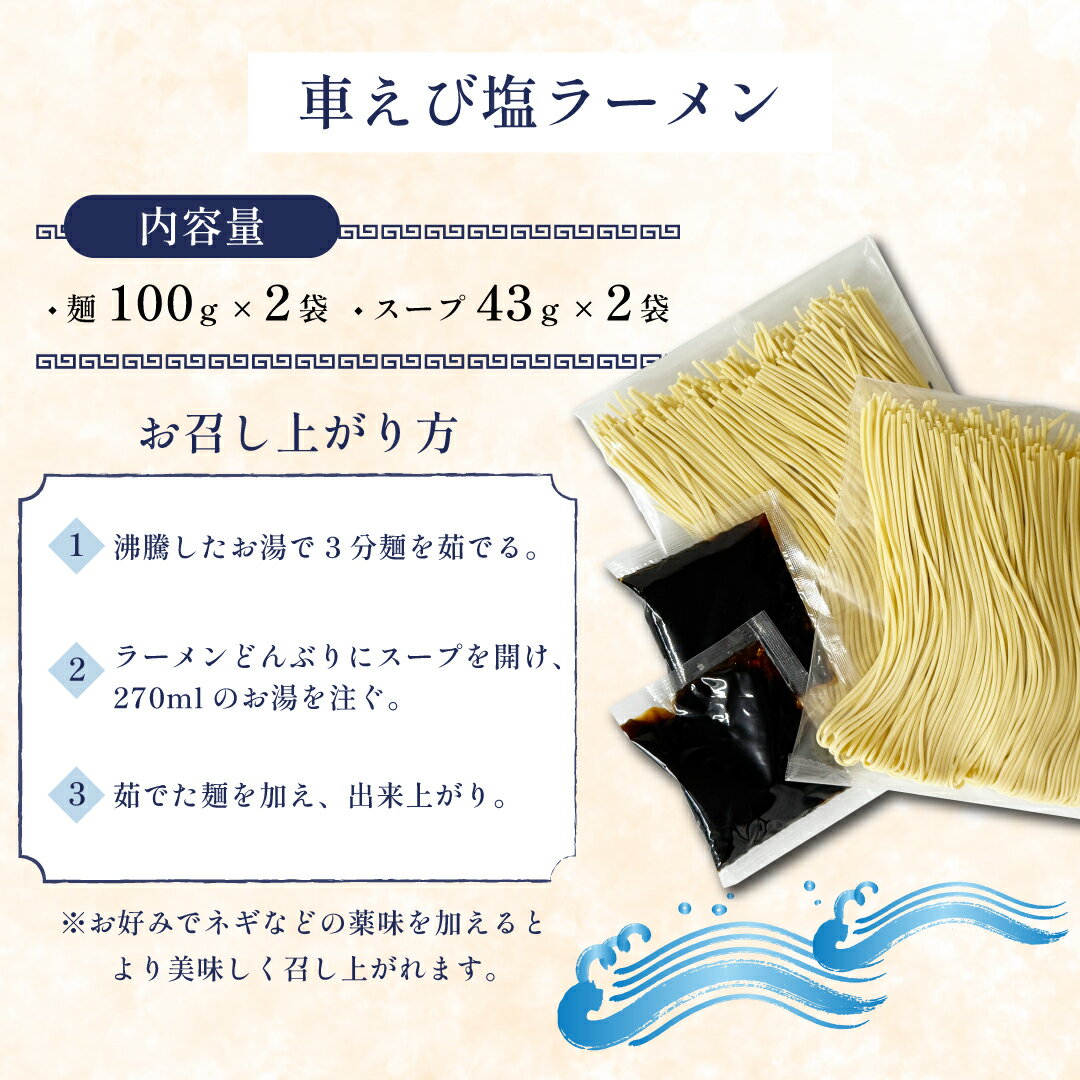 - 【ふるさと納税】\ ポスト 投函 で 受け取り 簡単 / 姫島産 車えび使用 車えび 塩 ラーメン 2食入り 麺 めん えび エビ 大分県 姫島村 ひめしま C24