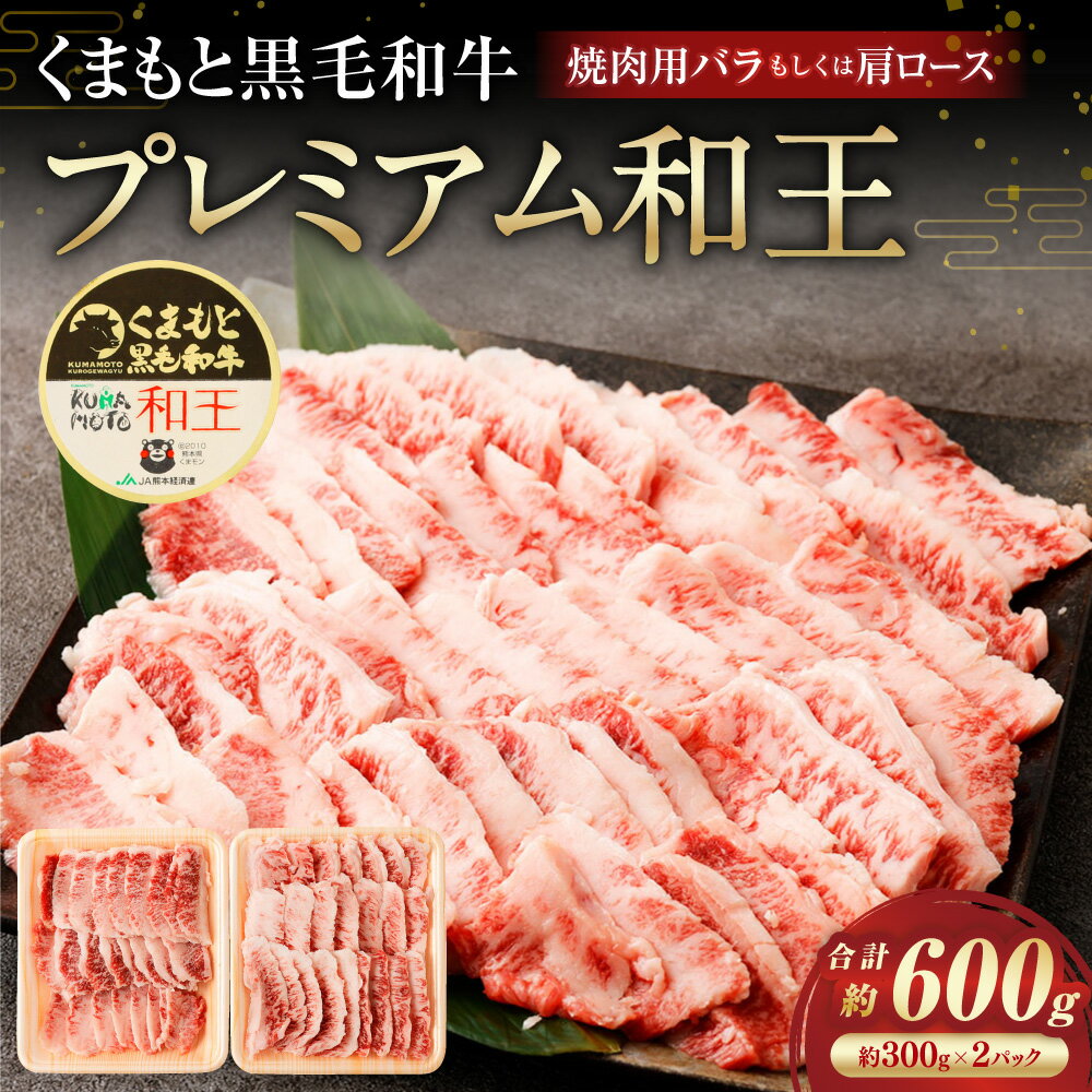 - 【ふるさと納税】くまもと黒毛和牛プレミアム和王 焼肉用(バラもしくは肩ロース) 計約600g(約300g×2) 牛肉 お肉 黒毛和種 和牛 焼き肉 冷凍 熊本県産 国産 九州 熊本県 相良村 送料無料