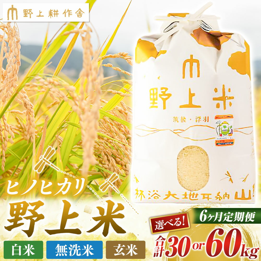 【ふるさと納税】<選べる種類・内容量>【6か月定期便】 野上米 白米 / 無洗米 / 玄米 1回あたり5kg / 10kg 1ヶ月毎 6回 令和7年産 お米 こめ ヒノヒカリ 精米 単一原料米 ごはん ご飯 福岡県産 国産 福岡県 うきは市 送料無料 【2025年10月下旬より発送予定】