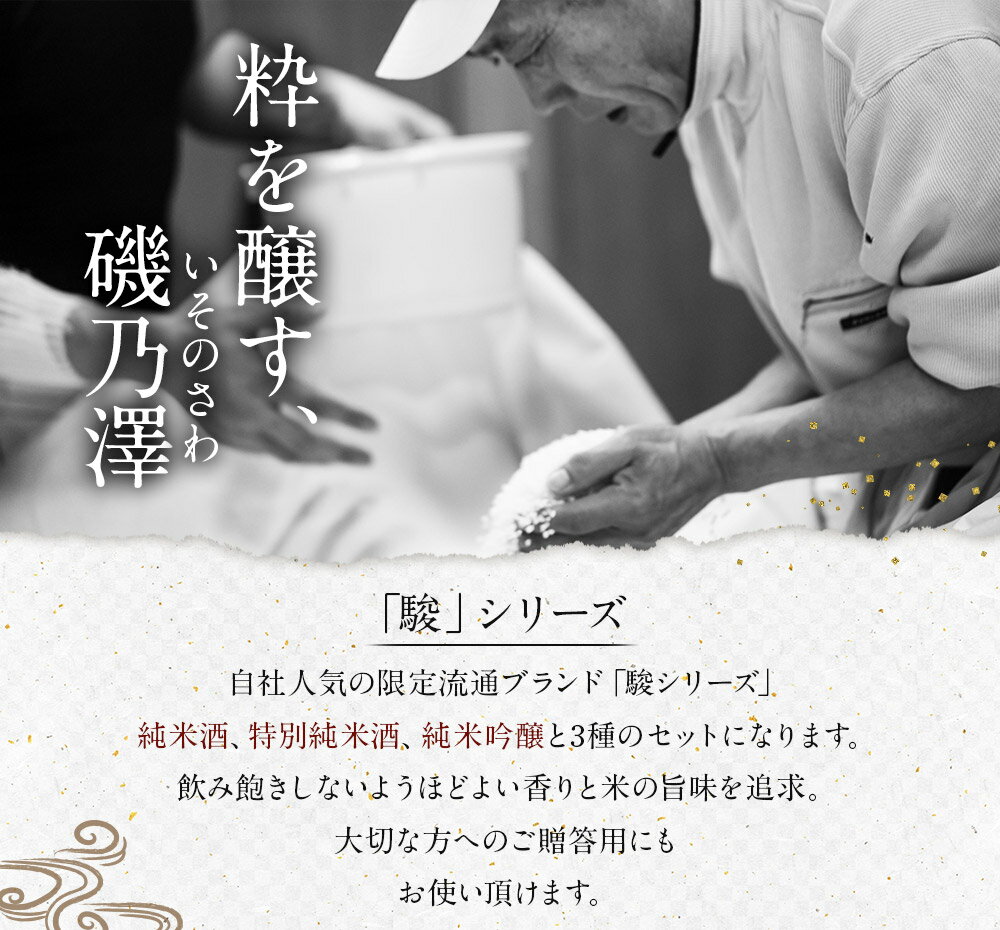 【ふるさと納税】【選べる種類】いそのさわ“駿”【駿 純米酒 720ml・駿 特別純米酒 720ml・駿 純米吟醸 720ml・駿 純米酒 720ml、駿 特別純米酒 720ml、駿 純米吟醸 720ml】9000円 ~ 24000円 9000円 ~ 2万4000円 焼酎 セット 詰め合わせ お酒 酒 送料無料 福岡県 うきは市
