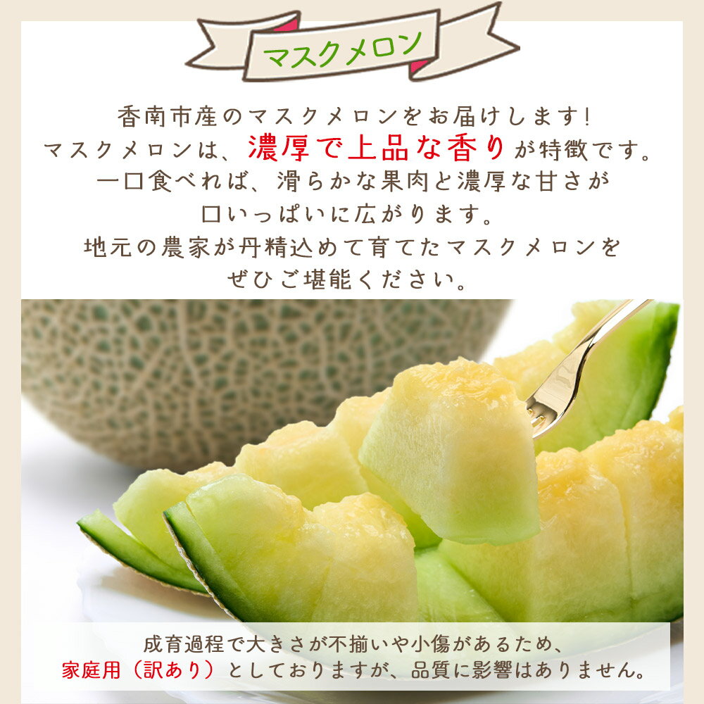 - 【ふるさと納税】【選べる内容量】マスクメロン (1/2玉) 家庭用 - 選べる 数量 国産 メロン 果物 フルーツ 青果 濃厚 デザート 訳あり 訳アリ ご家庭用 不揃い 傷 やすらぎ市 高知県 香南市【常温】 Ryr-0097