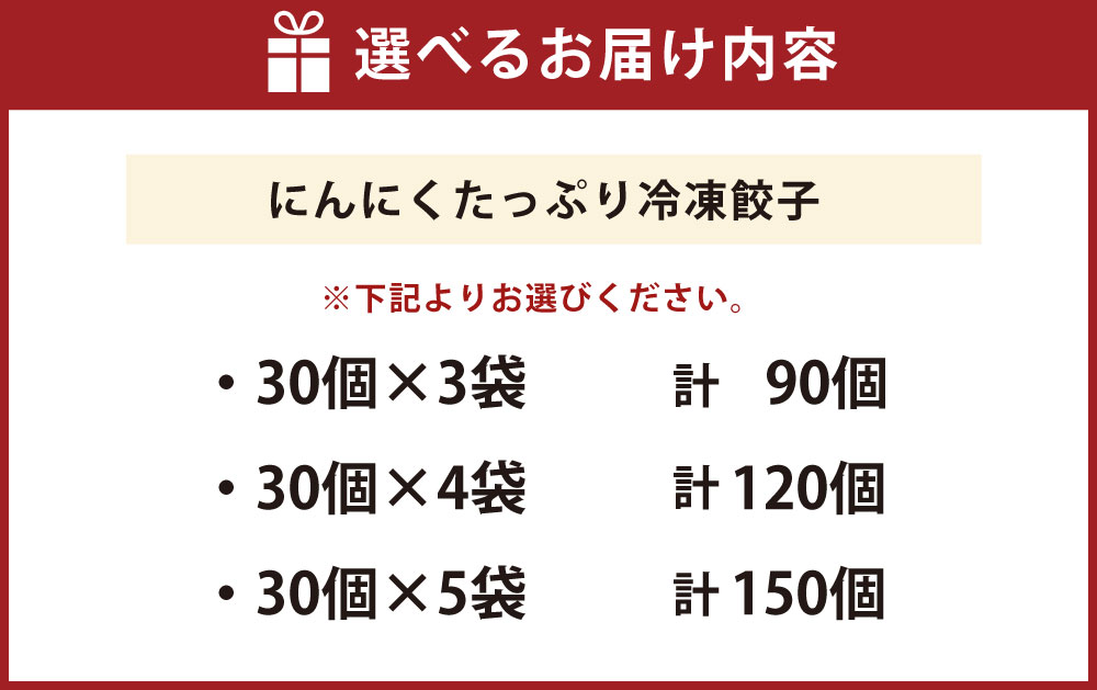 - 【ふるさと納税】にんにくたっぷり冷凍餃子 <選べる内容量> 1袋30個 3袋 / 4袋 / 5袋 合計90個入 / 合計120個入 / 合計150個入 皮から手作りのこだわり お子様にも大人気(ぎょうざ ギョーザ)もりもり亭 岡山県産 惣菜 点心 中華料理 夕飯 おつまみ おかず