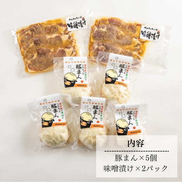 - 【ふるさと納税】さんさん豚まん(5個)・さんさん豚みそ漬け(180グラム×2)セット //長野県産 国産原料使用 レンジ調理 豚まん 肉まん 中華まん 味噌漬け SF09
