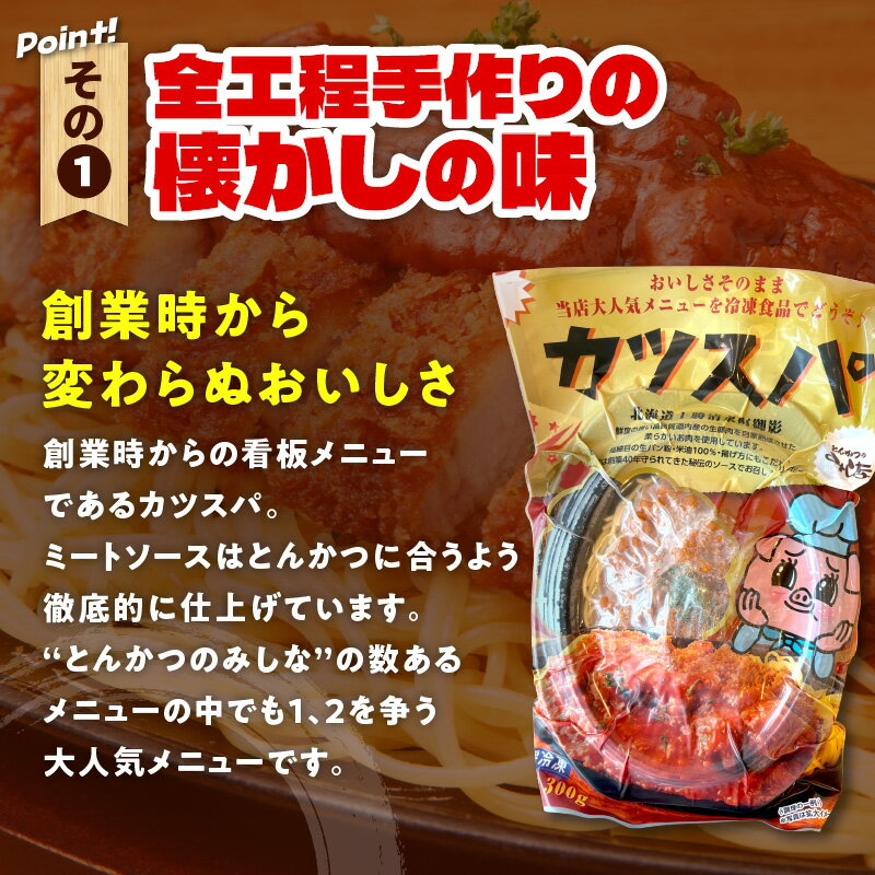 - 【ふるさと納税】レンジで温めるだけ!みしな大人気メニューをお家でお手軽調理! とんかつのみしな 冷凍カツスパ 3食セット スパカツ 名物 名店 人気メニュー 高品質豚肉 北海道産 極細目 生パン粉 北海道産米油 100% カラッと揚げた とんかつ 北海道 清水町 送料無料