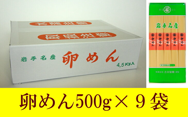 - 【ふるさと納税】 45人前! 卵香るそうめん 「卵めん」 500g×9袋 無添加 岩手名産 素麺 のし対応 [K0026]
