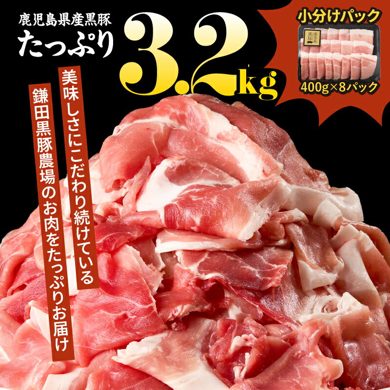 【ふるさと納税】鹿児島黒豚スライス 3.2kg [400g×8P] 国産 鹿児島 黒豚 豚肉 豚 小分け 冷凍 お肉 スライス 薄切り 豚しゃぶ しゃぶしゃぶ しゃぶしゃぶ用 すき焼き しょうが焼き【鎌田黒豚農場】