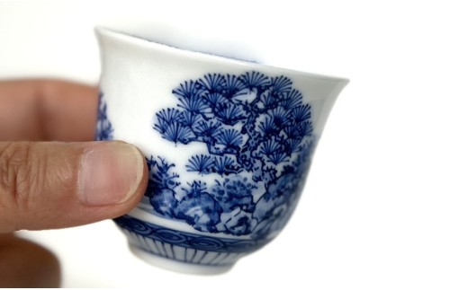 - 有田焼 青色山水絵反り ぐい呑み【起山窯】食器 うつわ 器 ぐい呑み 酒器 染付 岩絵 お酒 ブルー 18000円 A18-163