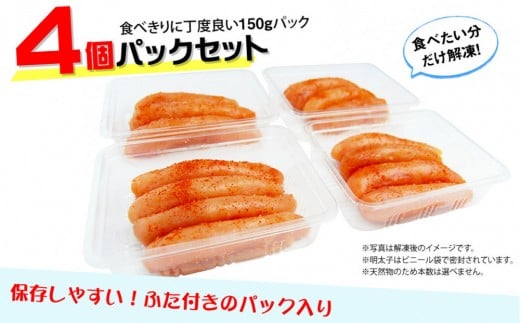 - 小分けシェア明太子「辛子明太子 中切れ」600g(150g×4)