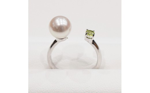 S085-468_あこや真珠 リング 7.5mm - 8mm ホワイトピンク ペリドット 真珠 (G:14号)