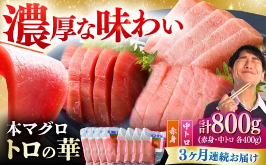 【全3回定期便】対馬産 本マグロ 800g(赤身400g、中トロ400g) ≪対馬市≫【桐谷商店】 トロの華 対馬 新鮮 マグロ 赤身 トロ 鮪 刺身 [WAQ072]