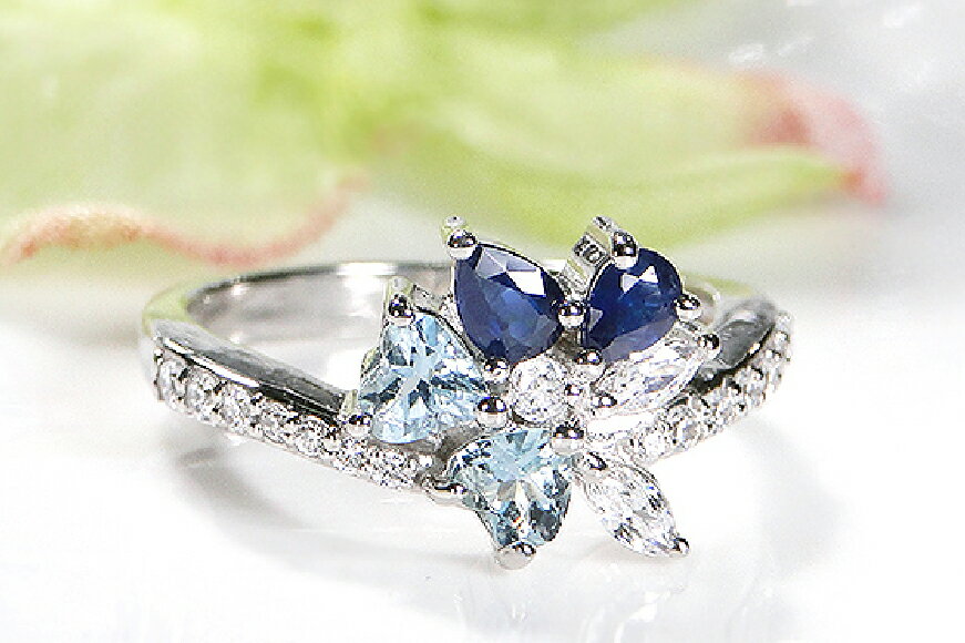 - 【ふるさと納税】 指輪 プラチナ PT900 ダイヤモンド 0.3ct アクアマリン サファイア フラワー 花束 ブーケ レディース リング カラフル 誕生石 【f283-pt-aqbs】 ジュエリー アクセ アクセサリー [オーダーメイドジュエリーメイ 山梨県 韮崎市 20745218]