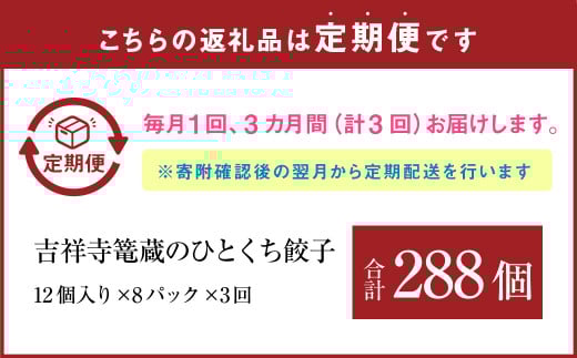 【3ヶ月定期便】吉祥寺篭蔵のひとくち餃子12個入り 8パック 餃子 冷凍