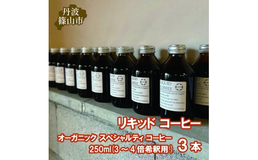 リキッド コーヒー オーガニック スペシャルティ コーヒー 250ml(3~4倍希釈用) 3本 コーヒー 珈琲 カフェ好き 珈琲好き 自家焙煎 香り高い