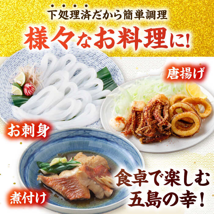 - 【ふるさと納税】【冷蔵】【下処理済】鮮魚ボックス(魚2種/アオリイカ/魚醤油1種) 五島市/金沢鮮魚[PEP002] 冷蔵 真空パック 新鮮 下処理済み 海鮮 刺身 セット 水いか 金澤仕立て 鮮魚 冷蔵 真空パック 新鮮 下処理済み 海鮮 刺身