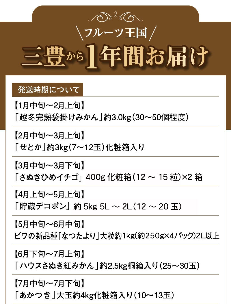- 【ふるさと納税】 フルーツ 定期 12回 特選 こだわり 12品 果物 産地直送 定期便 みかん いちご びわ マスカット 桃 キウイ シャインマスカット せとか デコポン 香川県 三豊市 300000 300,000円 台 フルーツ 詰め合わせ 定期 旬 新鮮 高級 お取り寄せ ギフト 返礼 五色青果