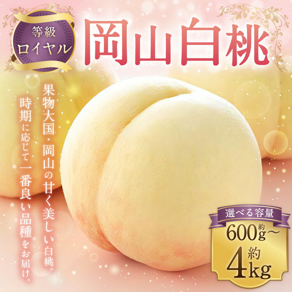 【ふるさと納税】岡山白桃 ロイヤル〈選べる 容量〉約600g(3玉) / 約1kg(4〜6玉) / 約1.2kg(4〜8玉) / 約2kg(5〜10玉) / 約4kg(8〜16玉) 桃 白桃 もも モモ ピーチ 果物 フルーツ デザート おやつ お取り寄せ 岡山県産 送料無料【2026年7月上旬~8月下旬迄発送予定】