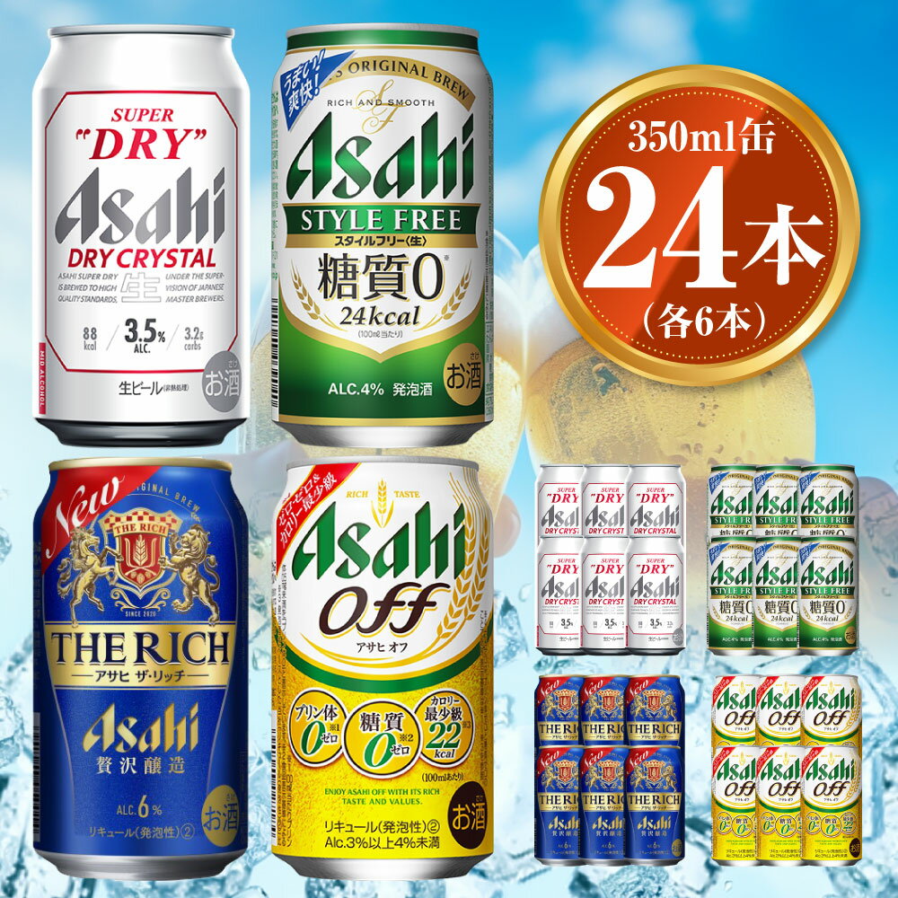 - 【ふるさと納税】アサヒ ドライクリスタル350ml×6本 スタイルフリー350ml×6本 アサヒザ・リッチ350ml×6本 アサヒオフ350ml×6本 セット 茨城工場 発泡酒 新ジャンル 第3のビール 贈答 計24本 4種 酒 アサヒビール 茨城県 守谷市 送料無料 ※2025年10月上旬頃より発送予定
