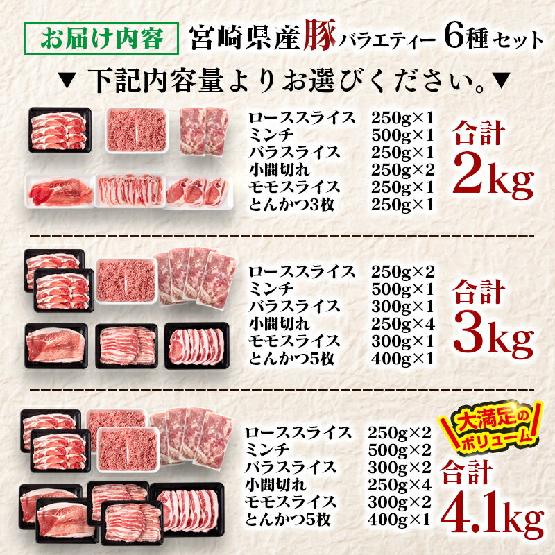 - 【ふるさと納税】宮崎県産豚肉6種バラエティセット 選べる内容量(2kg・3kg・4.1kg)「数量限定」 宮崎県 西都市 国産 小分け YA