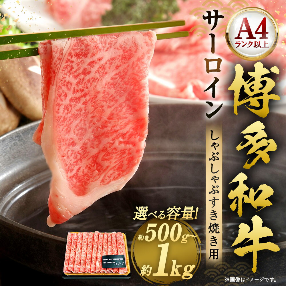 【ふるさと納税】<選べる内容量>【厳選部位・A4ランク以上】博多和牛 サーロイン しゃぶしゃぶ・すき焼き用 500g×1パック・計1kg(500g×2パック) 黒毛和牛 牛肉 お肉 スライス すきやき 化粧箱 冷凍 福岡県産 国産 九州 福岡県 直方市 送料無料