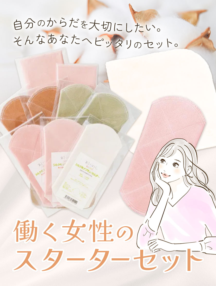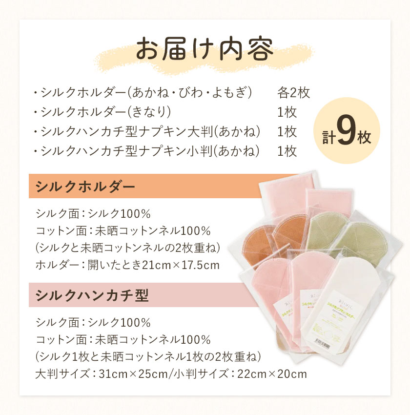 - 【ふるさと納税】布ナプキン ナプキン シルク コットン 働く女性の スターターセット シルクホルダー シルクハンカチ型 大判 小判 計9枚 有限会社アルデバラン《45日以内に出荷予定(土日祝を除く)》岡山県 笠岡市 オーガニックコットン シルク 布ナプキン