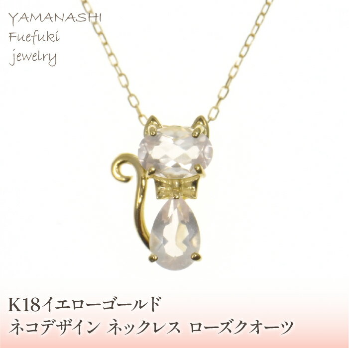 - 【ふるさと納税】K18イエローゴールド ネコデザイン オニキス ローズクオーツ ネックレス 管理番号204922 ふるさと納税 人気 おすすめ ランキング アクセサリー 宝石 ジュエリー 高級 記念日 プレゼント 山梨県 笛吹市 送料無料 天然石 218-112