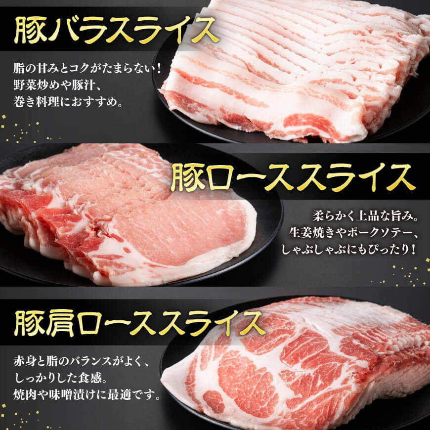 - 【ふるさと納税】※発送時期・グラム数が選べる※ 宮崎県産豚肉 スライス3種得々セット 1kg〜2kg - 肉 豚肉 国産 九州産 バラ ロース 肩ロース 詰合せ 3種 生姜焼き しゃぶしゃぶ 惣菜 和食 洋食 中華 肉巻き 焼肉 肉巻きおにぎり 送料無料 宮崎県川南町 C11114 C11120