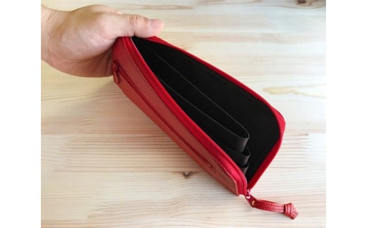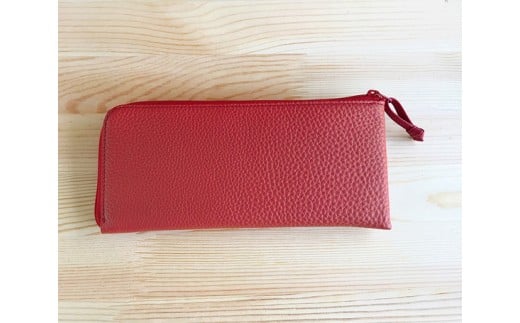 【レッド】フラット札入れ(長財布) / シュリンクレザー さいふ サイフ 東京都