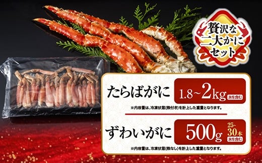 D-11051【年内配送可】 ボイル済み本タラバガニ1.8~2kg、生ずわいポーション500g(25~30本)