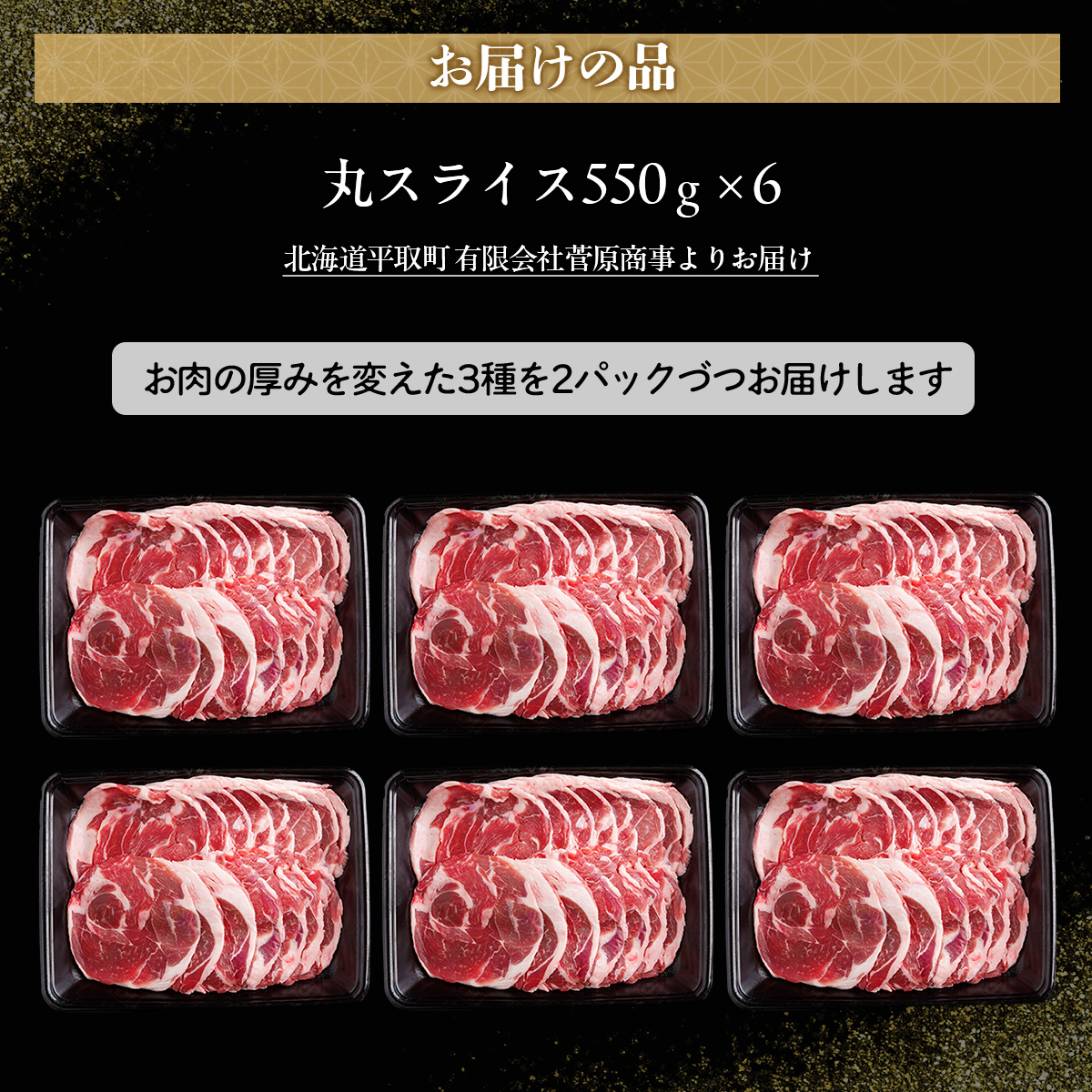 【厚さ3種類/食べ比べ/丸スライス】『ラムスライス』550g×6、超大容量の3.3kg キャンプにオススメ! BRTI019