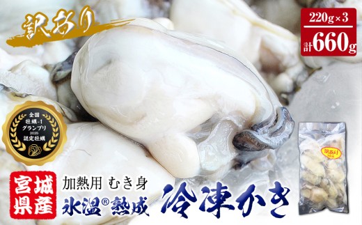 牡蠣 <訳あり> 氷温熟成 かき 220g × 3パック 合計 660g 加熱用 牡蠣むき身 小分け むき身 むき牡蠣 カキ オイスター 濃厚 冷凍かき 宮城 小分け 冷凍 バラバラ冷凍 冷凍カキ かき 牡蠣 海鮮 魚介 貝類 海の幸 BBQ 家庭用 まるたか水産 ふるさと納税 宮城県 石巻市 宮城 石巻