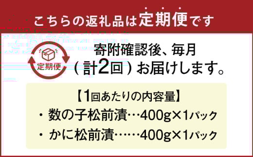 【2回定期便】 プチプチ食感の数の子松前漬とずわい蟹のかに松前漬セット 各400g (合計1.6kg) 2回 松前漬 松前漬け 数の子 魚卵 ずわい蟹 ズワイガニ かに カニ 蟹 海鮮 海の幸 セット 定期便 北海道 小樽市 冷凍 送料無料