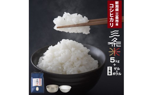 新潟県三条市産 コシヒカリ 三条米 5kg ボウル・ザルセット 令和7年産 新生活 一人暮らし 【014S066】
