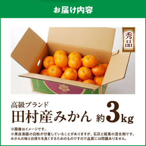 - G7339_高級ブランド 秀品 紀州有田田村産みかん 3kg 濃厚 糖度 酸味 バランス 甘さ コク 国産 みかん 有田みかん フルーツ 果物 果実 デザート おやつ お取り寄せ お取り寄せフルーツ 和歌山県 湯浅町 送料無料